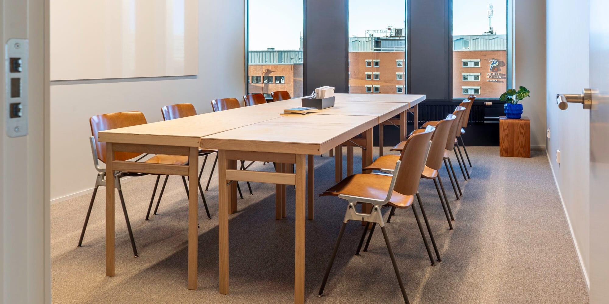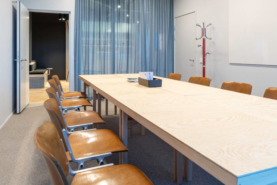 1002 is a classic boardroom in A house style: minimalist, functional, and with natural light that promotes a calm working environment. Perfect for follow-ups, check-ins, and work meetings where simplicity is key.