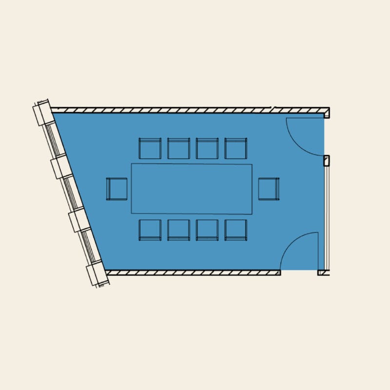 Capacity8 people, fixed board meeting setup