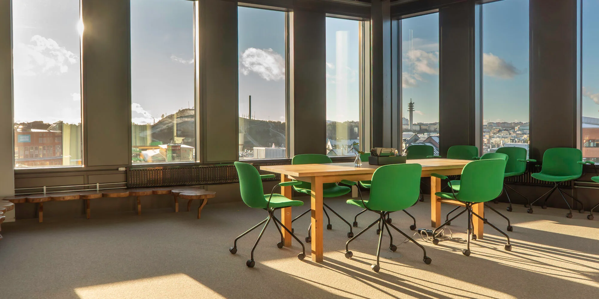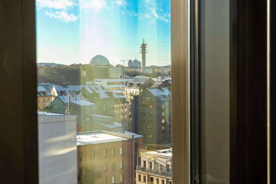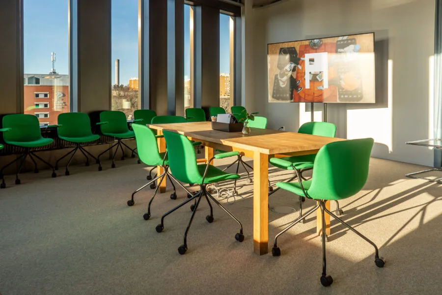 Meeting room 1005 overlooks Hammarbybacken and Globen, with generous furnishings and an atmosphere that makes it easy to collaborate. Larger groups meet here in an environment that is both professional and warm – perfect for workshops, presentations and management meetings.
