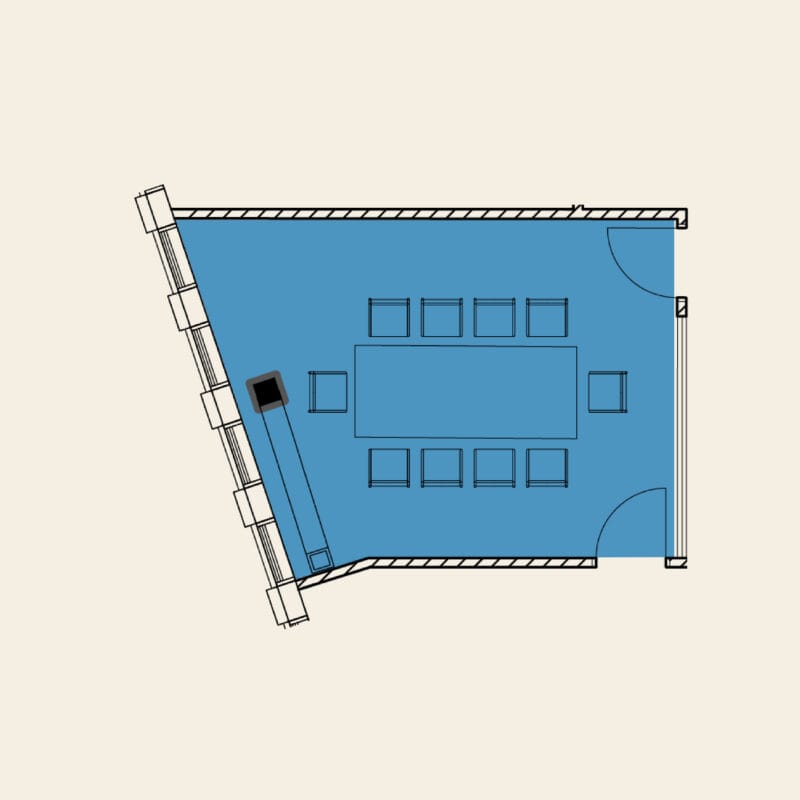 Capacity15 people, fixed board meeting setup
