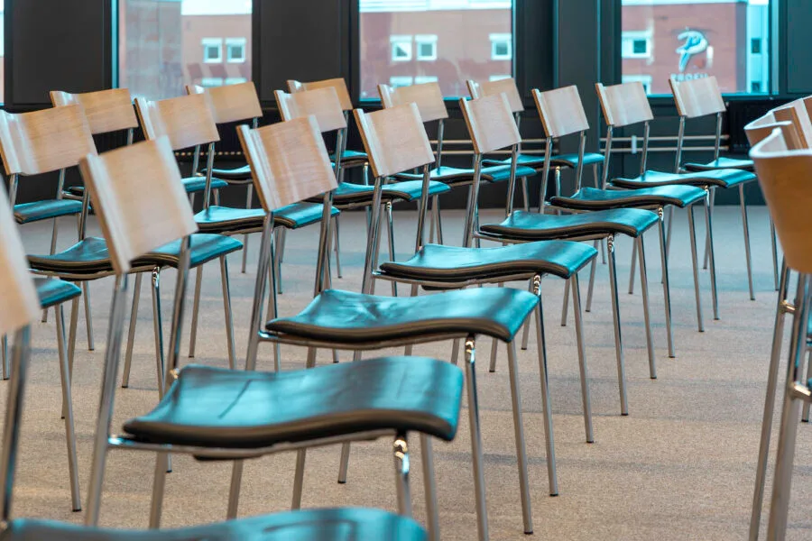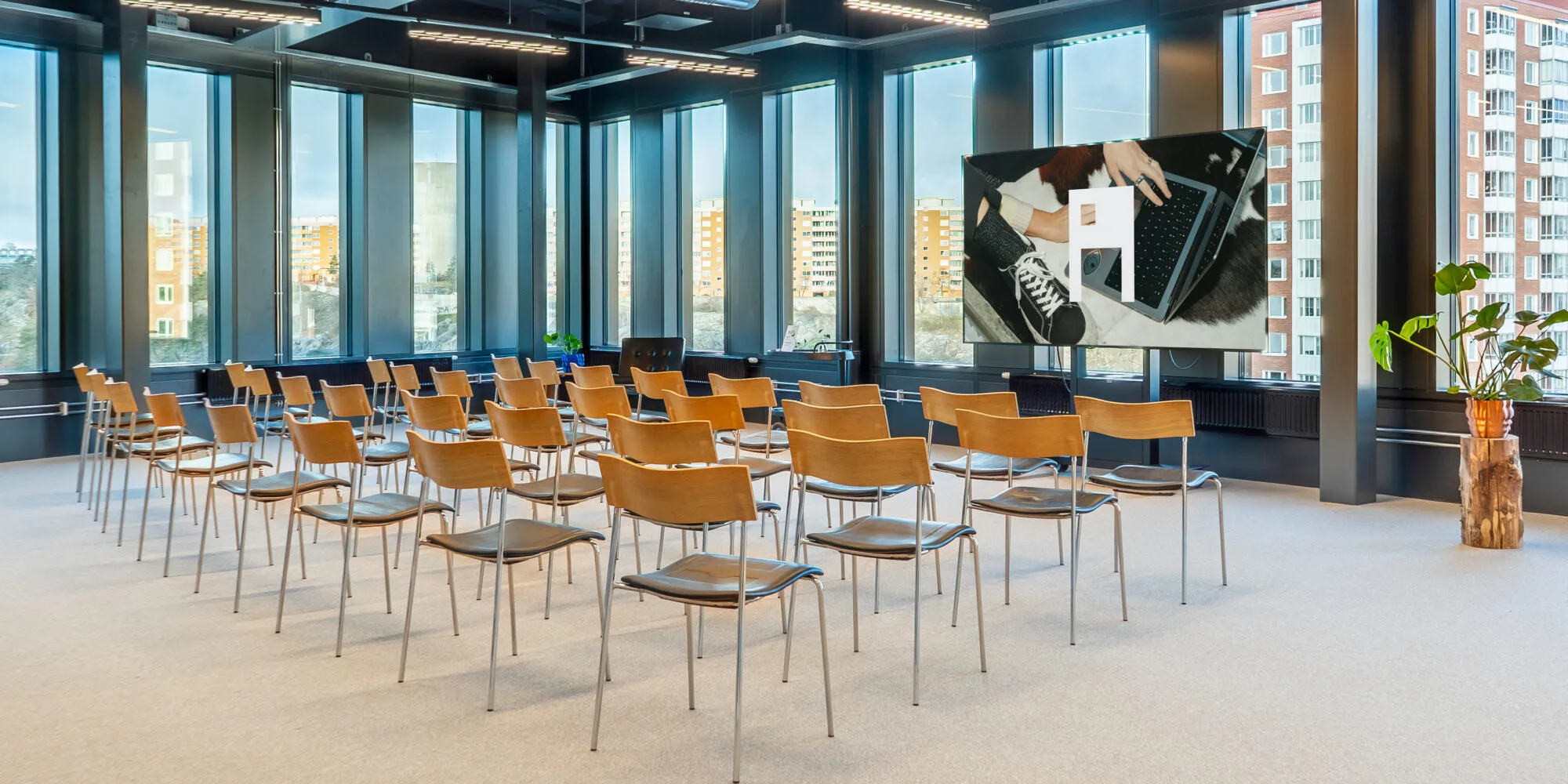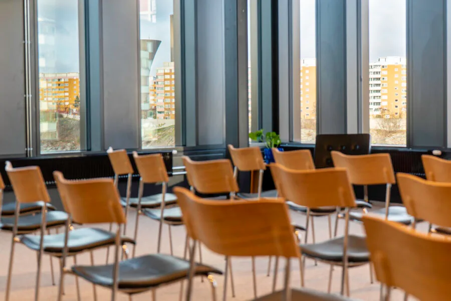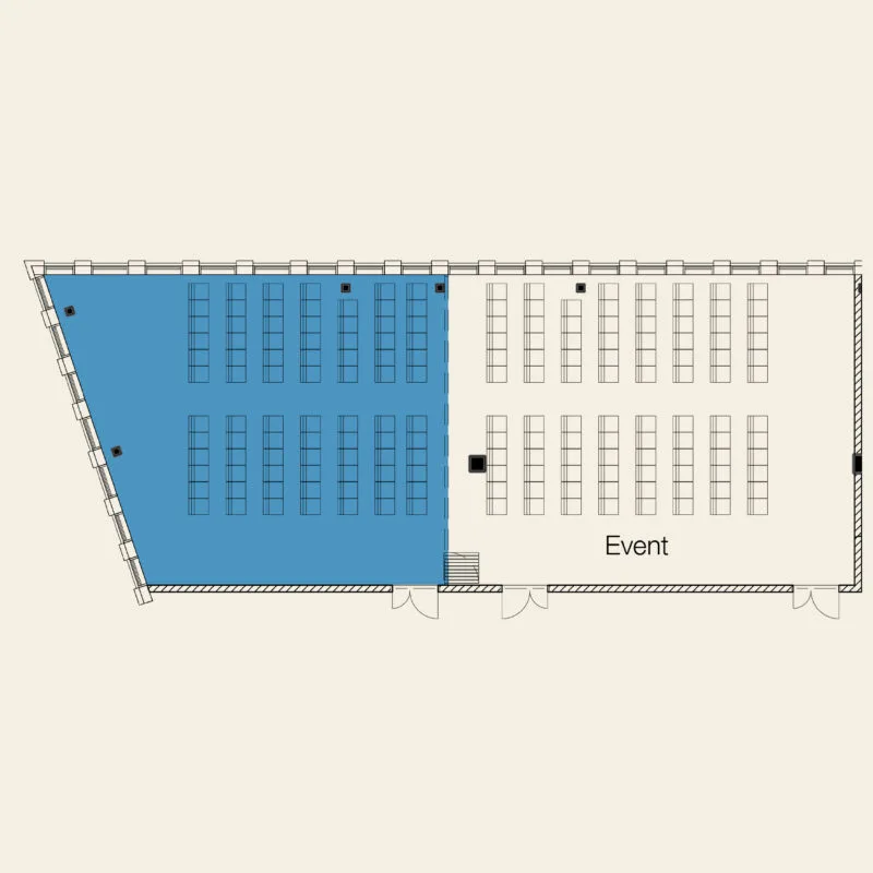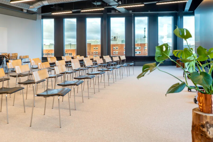 Bang 2 erbjuder ett rymligt och välbalanserat mötesrum, med kapacitet för upp till 60 personer. Här får du utsikt från två väderstreck och den stora salens känsla men i en mer intim förpackning. Det är en plats för samtal som ska höras, beslut som ska landa och grupper som behöver ett rum med puls men utan trängsel.
